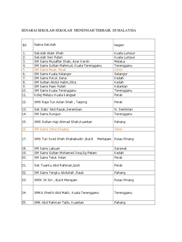 Senarai Sbt Sekolah Berprestasi Tinggi Di Malaysia